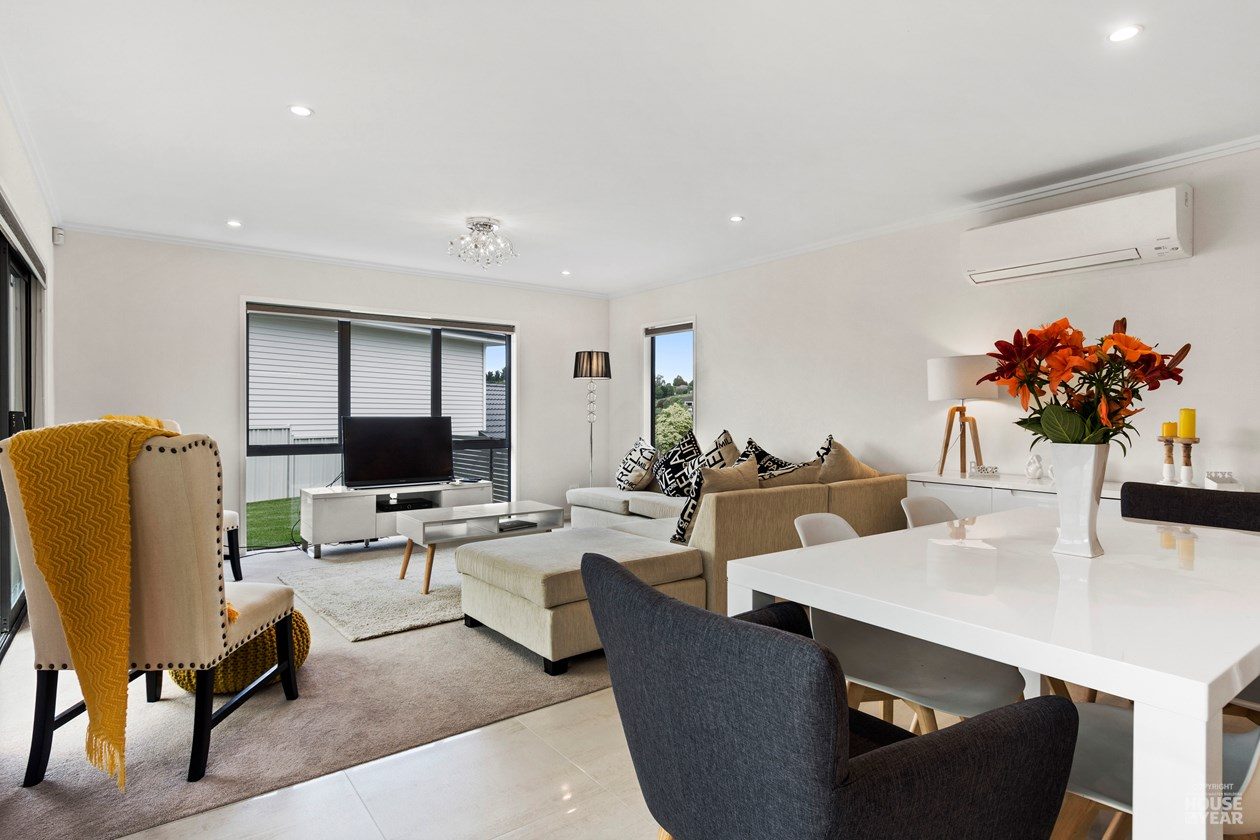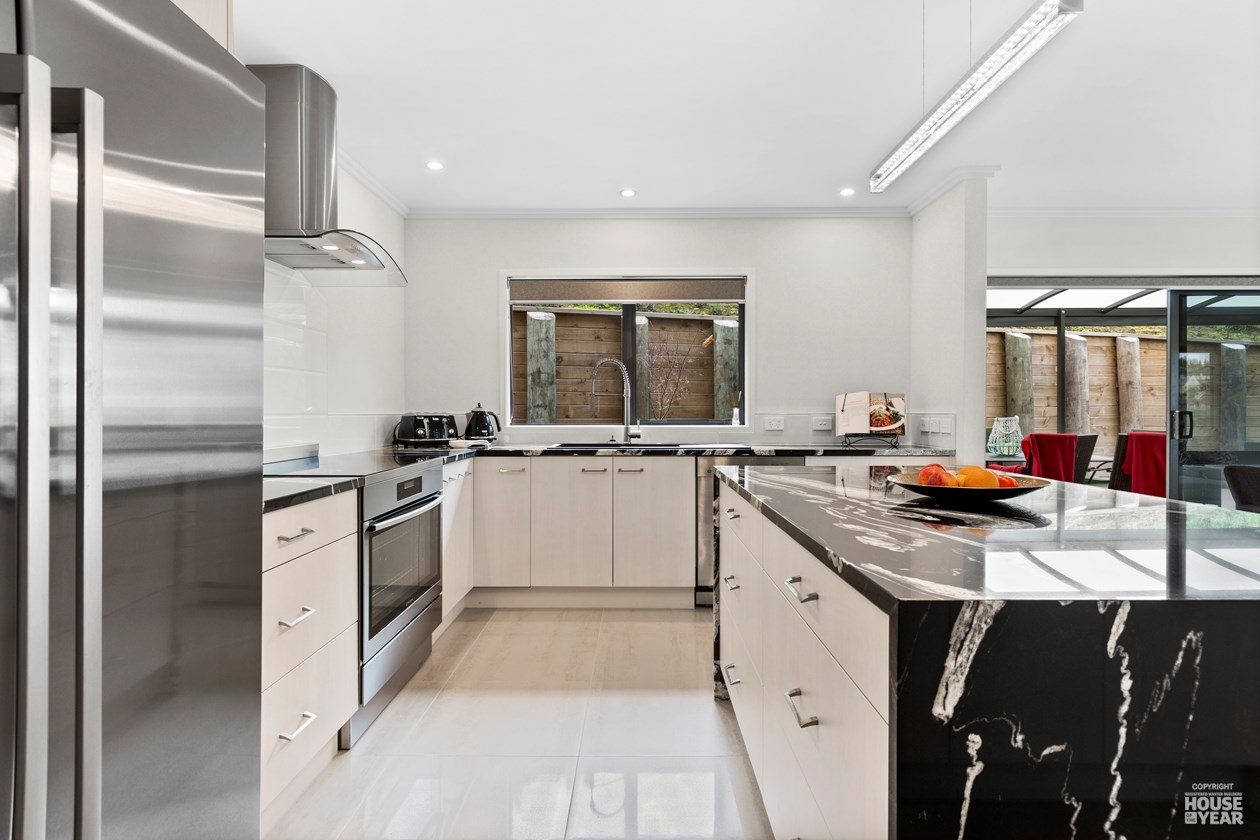 Perched on an elevated site, this cedar-clad residence is a seamless blend of traditional materials and modern comfort. Designed to embrace natural light while ensuring privacy, the home features four bedrooms, three bathrooms, and two inviting living spaces across its two levels.
