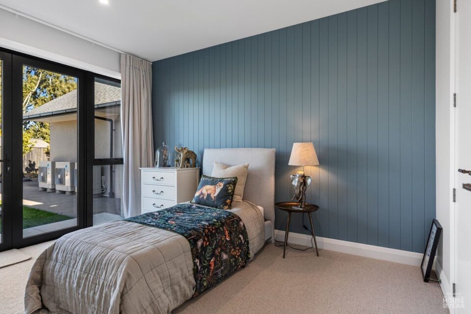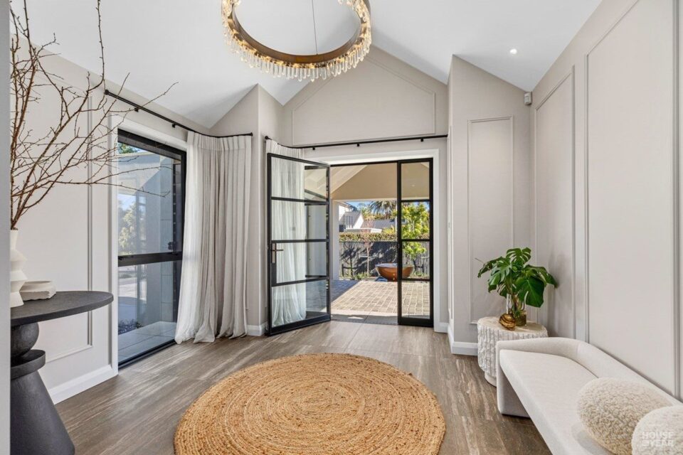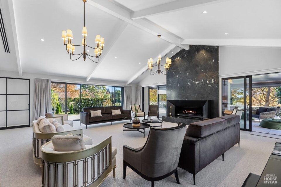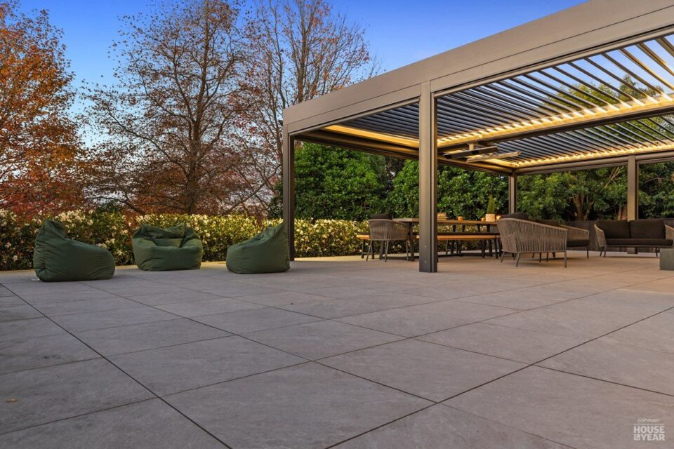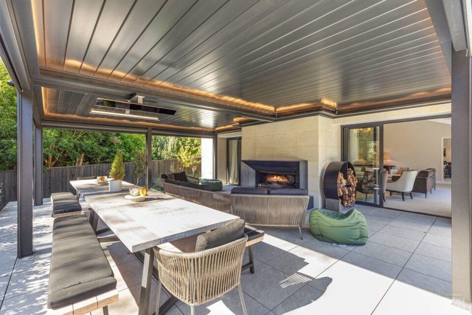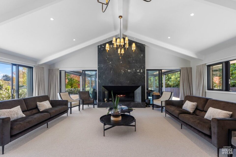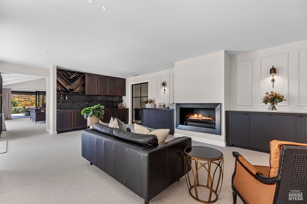 A significant extension and a brilliant renovation by Kuriger Builders have transformed this five-bedroom 1998 Tauranga home into an impressive retreat. The original polystyrene plaster was replaced with a more durable AAC panel plaster system, ensuring longevity and improved insulation. Aesthetic enhancements include Abodo cladding and Hinuera natural stone, which now adorn the feature chimney and walls, adding timeless character.
