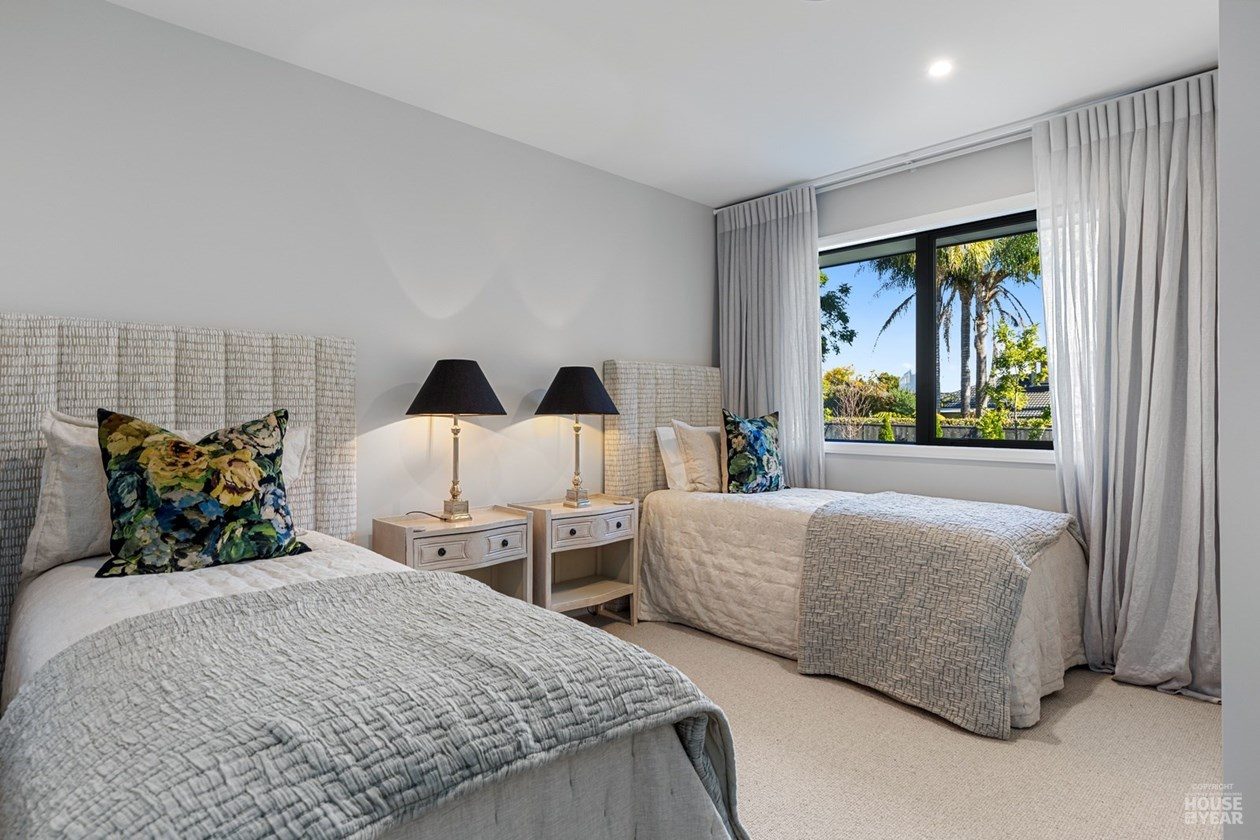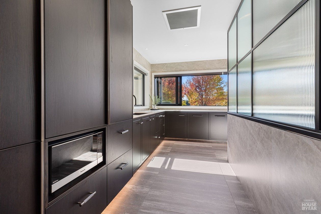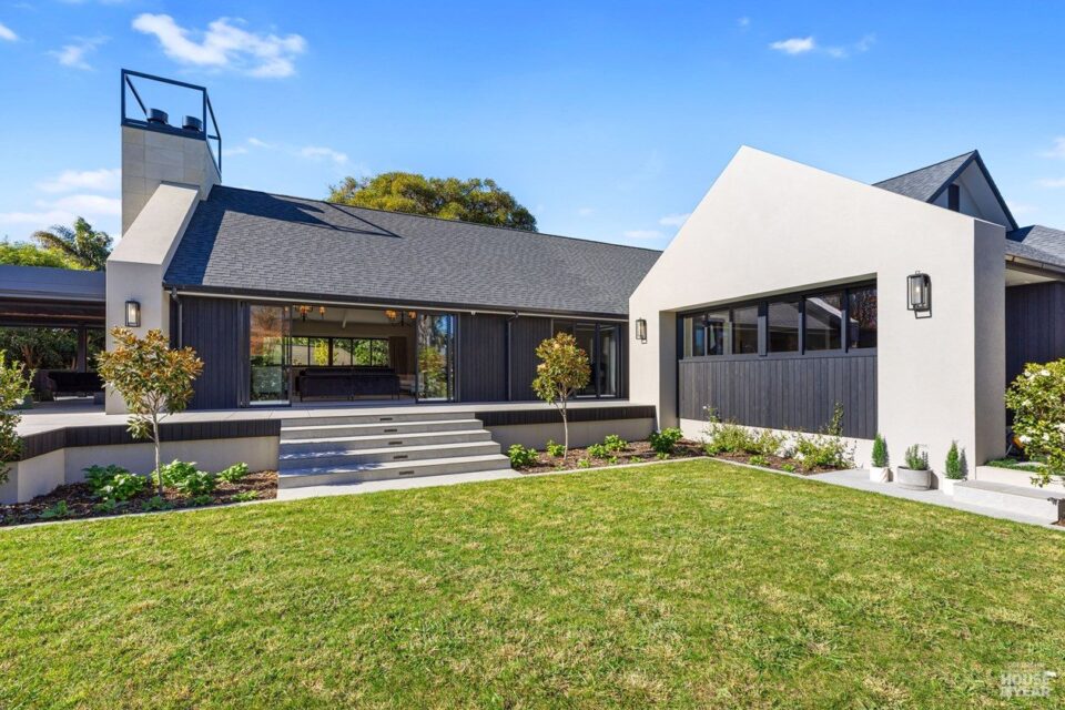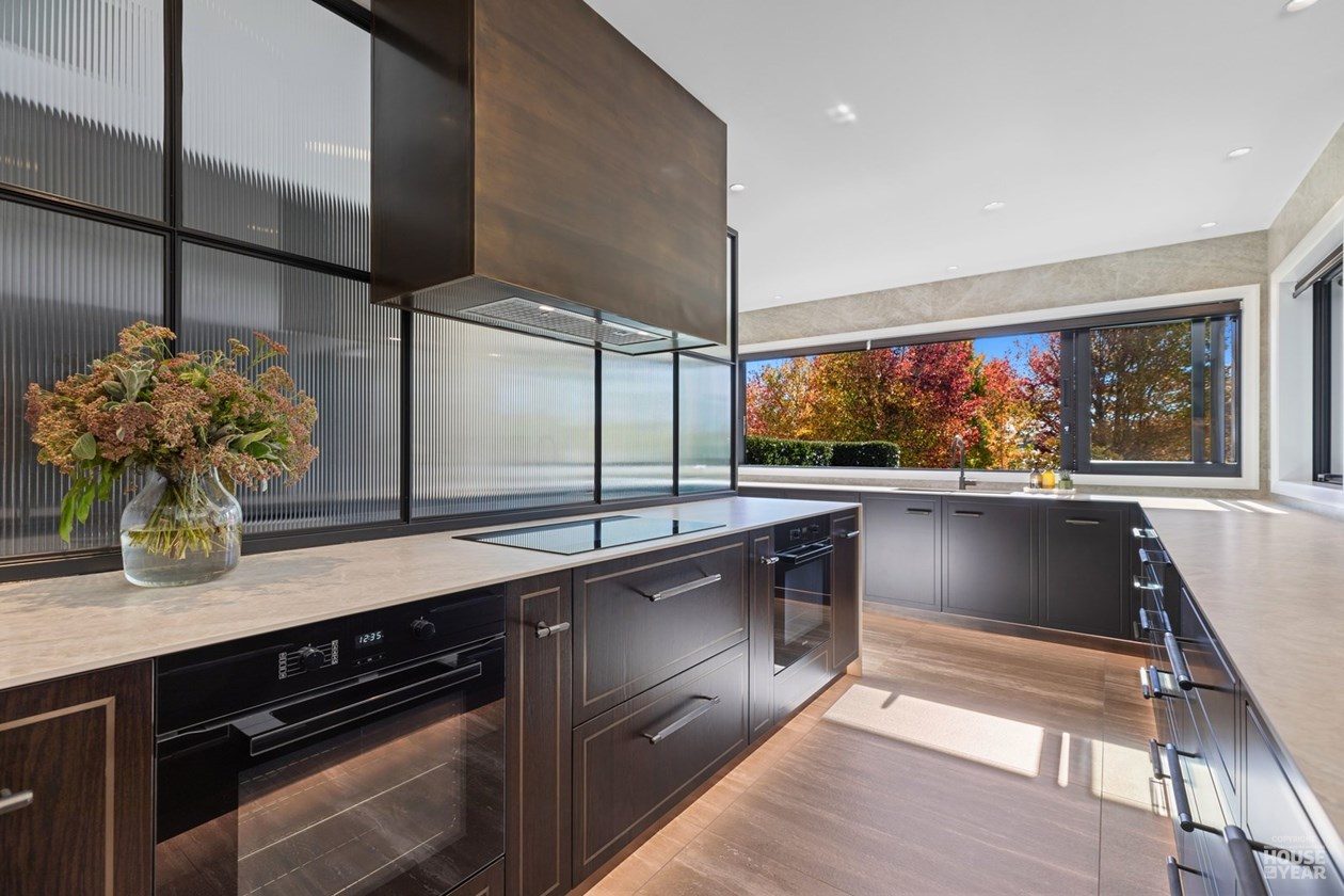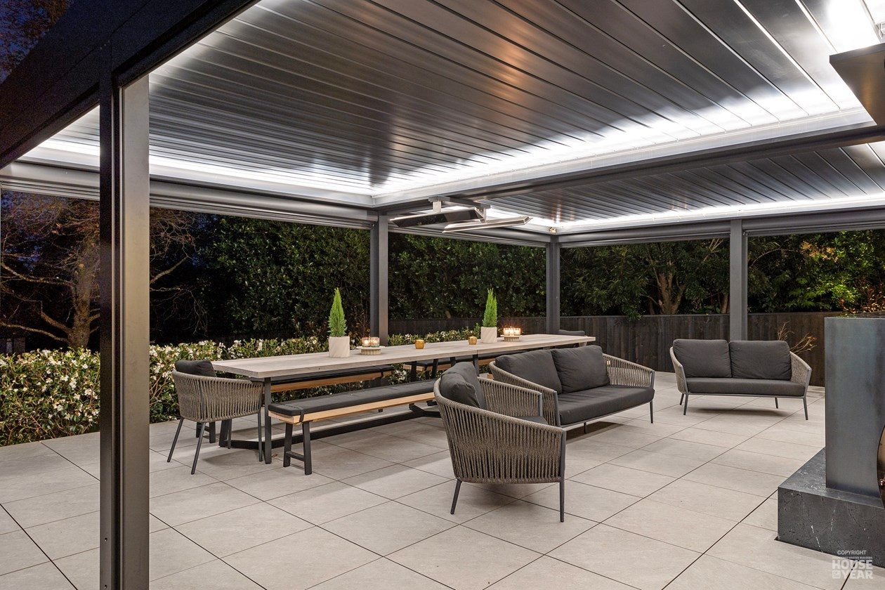A significant extension and a brilliant renovation by Kuriger Builders have transformed this five-bedroom 1998 Tauranga home into an impressive retreat. The original polystyrene plaster was replaced with a more durable AAC panel plaster system, ensuring longevity and improved insulation. Aesthetic enhancements include Abodo cladding and Hinuera natural stone, which now adorn the feature chimney and walls, adding timeless character.