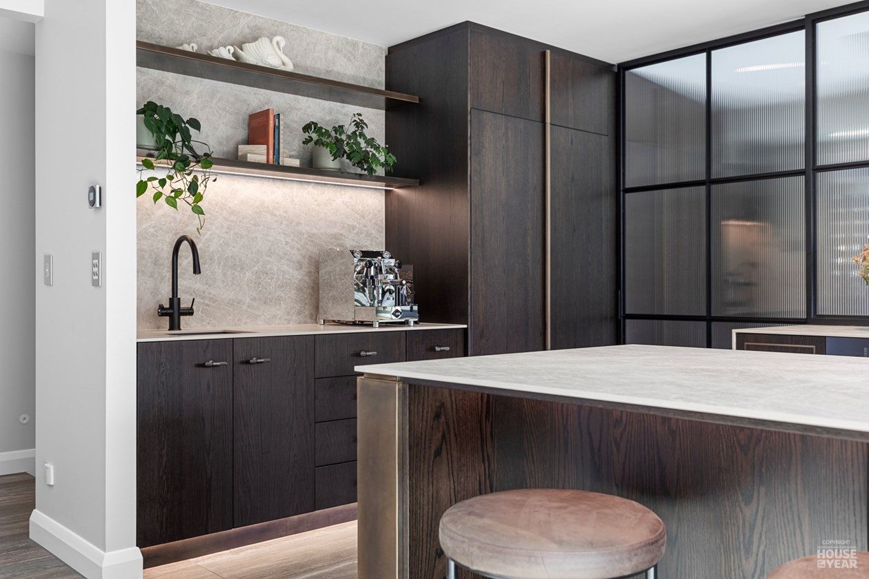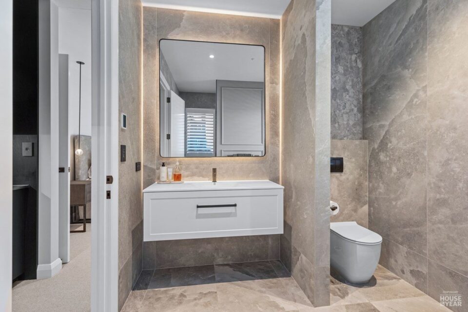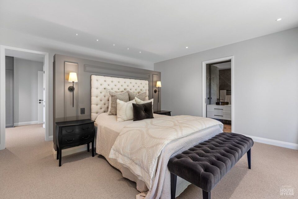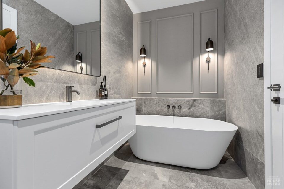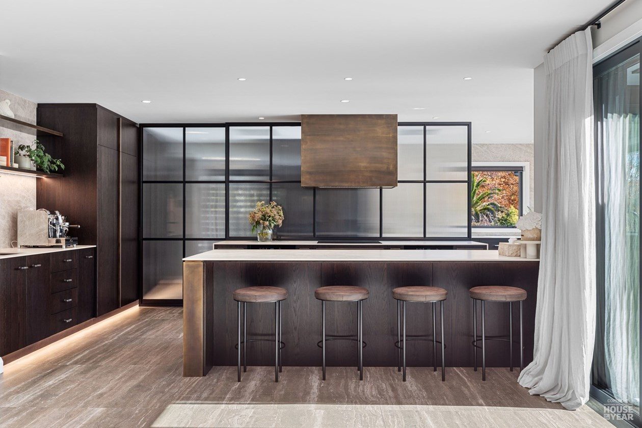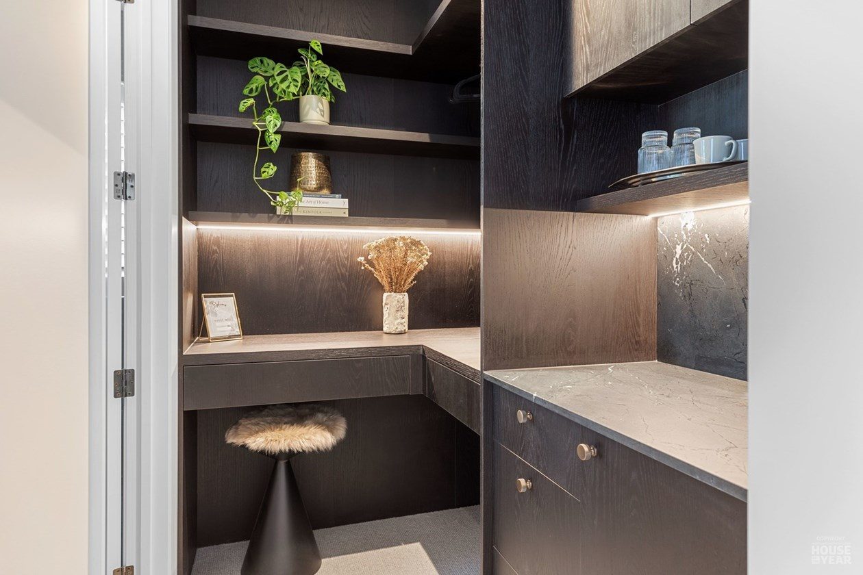 A significant extension and a brilliant renovation by Kuriger Builders have transformed this five-bedroom 1998 Tauranga home into an impressive retreat. The original polystyrene plaster was replaced with a more durable AAC panel plaster system, ensuring longevity and improved insulation. Aesthetic enhancements include Abodo cladding and Hinuera natural stone, which now adorn the feature chimney and walls, adding timeless character.
