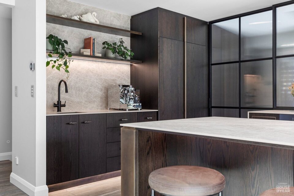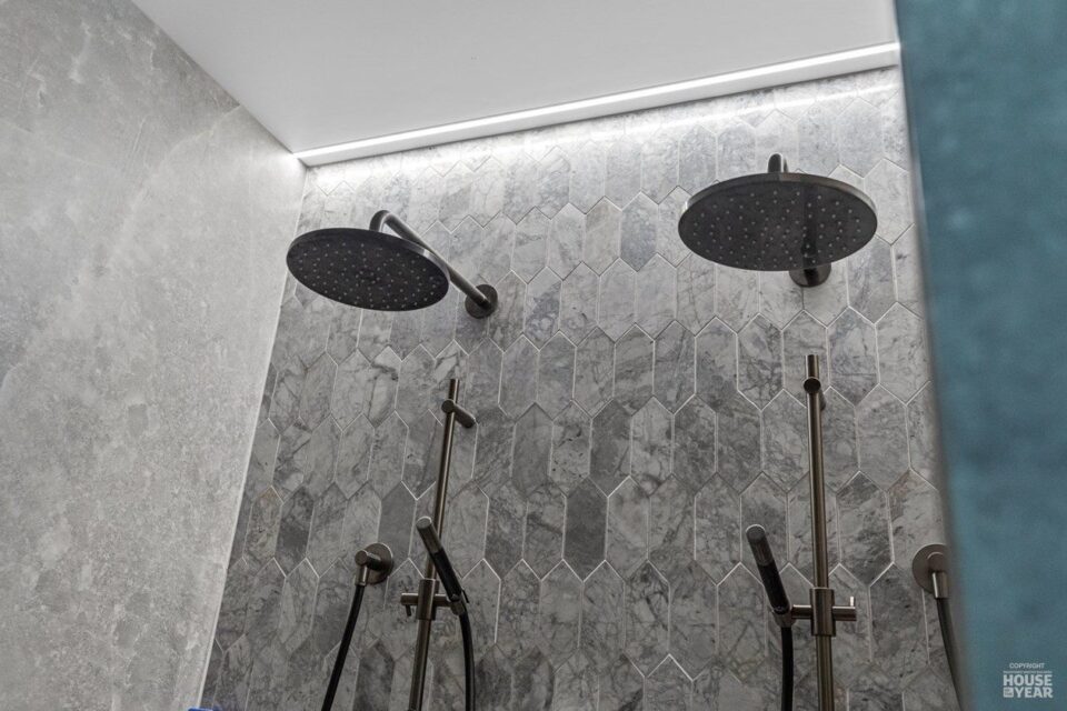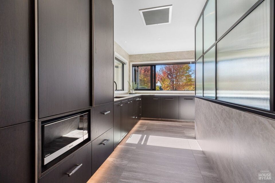The structural transformation extends beyond materials. The large family-wing addition seamlessly integrates with the existing structure, housing five bedrooms, four ensuites, and a unique kids’ loft. Thoughtful design choices maintain continuity—matching roof shingles preserve the original aesthetic, while dramatic large parapets create a striking entrance.