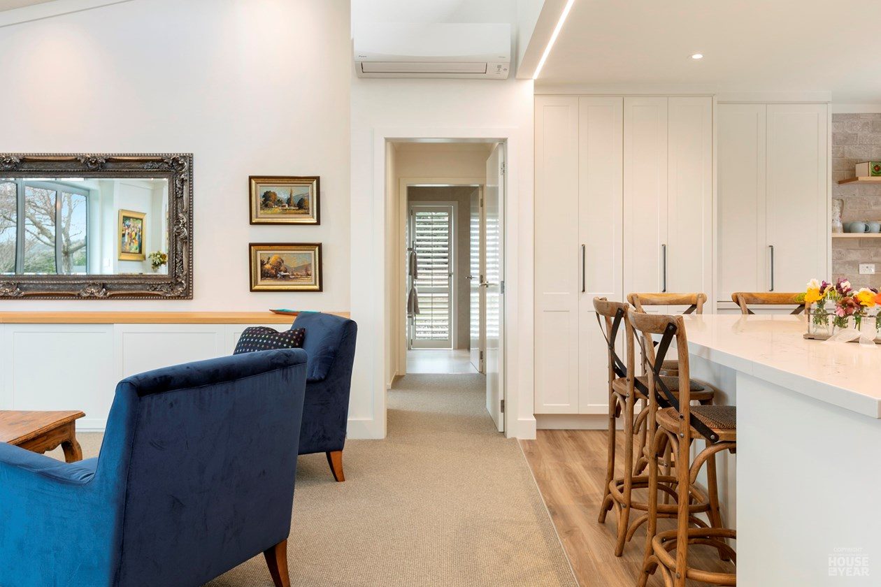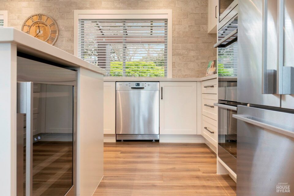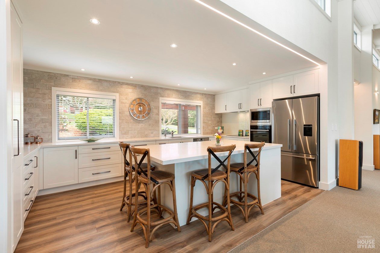 The owners of this home envisioned a light-filled open-plan space that seamlessly connects interior and exterior living. By removing internal walls, installing steel portals, and incorporating laminated beams, the home now offers 95sqm of seamless living beneath soaring raking ceilings.