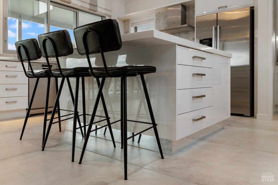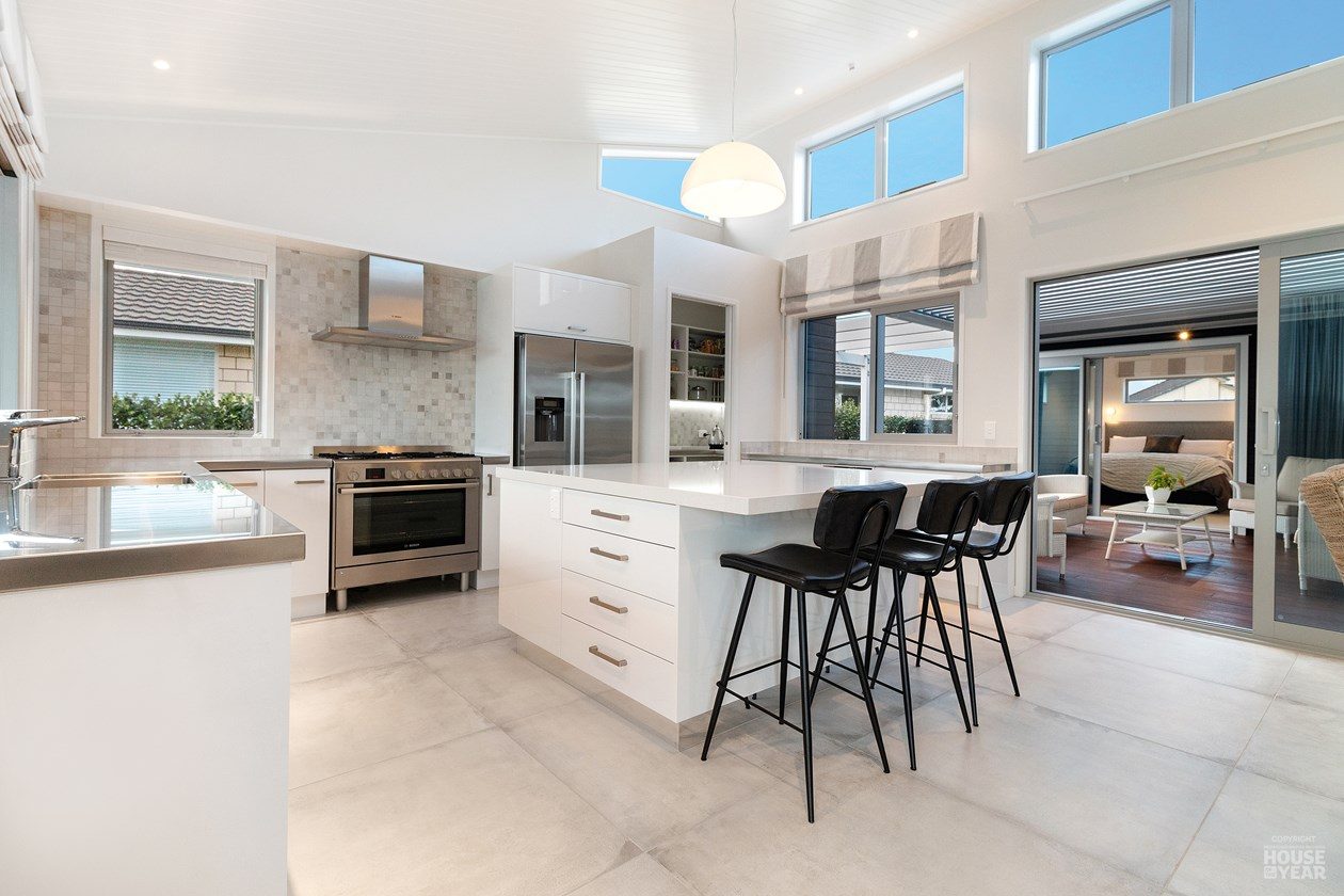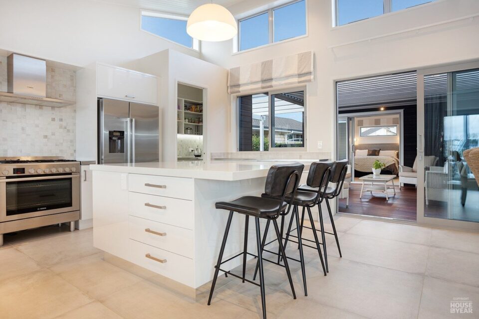 The open-plan kitchen merges sleek finishes with everyday functionality, offering timeless appeal. Underfoot, large floor tiles create an elegant foundation, transitioning smoothly into plush carpets in the cosy lounge and three bedrooms.